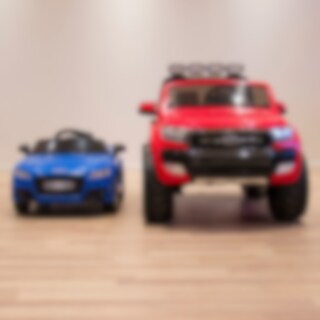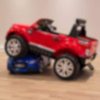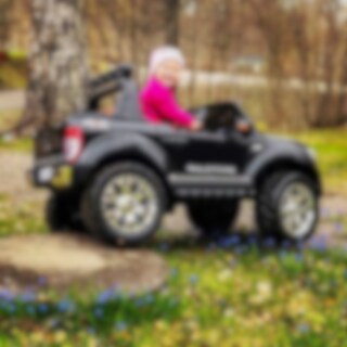 Ford Ranger Super Cab 4x4 er en firehjulsdreven lisensiert kopi av den ekte pickupen med robust attitude. Med ekte firehjulsdrift og den gigantiske batteripakken 12V 14Ah (40% mer enn 10Ah-standarden) har bilen god strøm og driftstid. En kraftig funksjon av denne elektriske bilen er at du kan bytte mellom bakhjulsdrift (2WD) og firehjulsdrift (4WD) med et enkelt trykk på en knapp. På asfalt som et eksempel kan det være en god idé å slå av firehjulstrekk for å få lengre driftstid. Akkurat som en pick-up skal være, så er det stor plass til to barn.