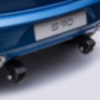 Elbil Volvo S90 Inscrpition leveres med en megde ulike funksjoner for å minne så mye som mulig om en ekte bil. Noe som særskiller akkurat Inscription-versjonen fra de fleste andre elbiler på markedet er at bilen har et lakkert kaross samt sete i kunstlær. Dette gir en helt annen detaljefinish på bilen, spesiellt når solen lyser på og karossen glinser i samspill med smilet på den lille føreren! At bilen har sete i kunstlær gir ikke bare et luksuriøs følelse, men også en bedre komfort sammenlignet med tradisjonelle seter i hardplast. Utover dette har Volvo S90 åpningsbare dører samt en innredingn i kupeen som nesten ser ut som en ekte Volvo. En "bilstereo" med flere førinnspilte melodier finnes, samt mulighet til å koble til MP3-spiller, USB-enhet eller SD-kort for å spille av din egen favorittmusikk. Belysning i strålkasterne finnes i de modellriktige Volvo "Tors hammer" LED-deisgn. Også baklyktene lyser frekt i rødt LED-lys. En detalje som er satt pris på med denne elbilen er gummidekk. Det er en stor fordel sammenlignet med dekk i hardplast da de fir en mye mer stillegående drift samt at livslengden blir mye lengre.