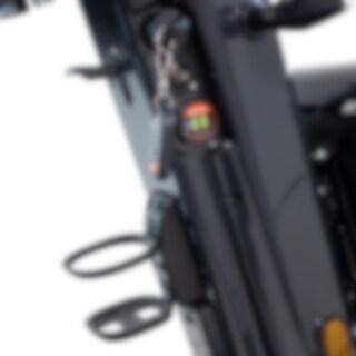 Blimo x-950 har både lys- og blinklys foran og bak, så det er ingen problem å kjøre i mørket. I tillegg er det horn, radio med fjernkontroll og en frigir-knapp på kontrollpanelet.