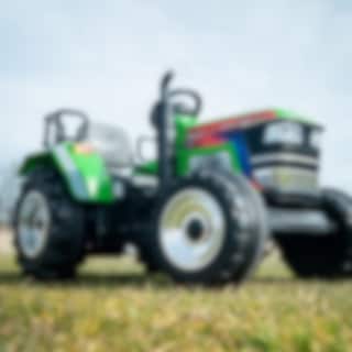 Vår tøffe traktor Harris har stødige hjul med grove mønstring og doble motorer med totalt 70W effekt. Dessuten finnes masse gøye funksjoner som belysning, "bilstereo" og fremover/bakover-gir.