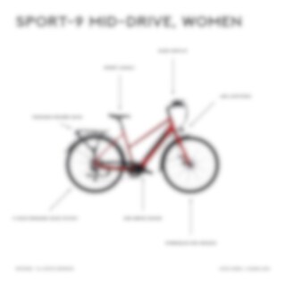 Evobike SPORT-9 Mid-Drive er en sporty elsykkel av trekking-modell, . I det oppdaterte designet er litiumbatteriet integrert i rammen, noe som gir en stabil og dynamisk følelse kombinert med et moderne og stilig design.