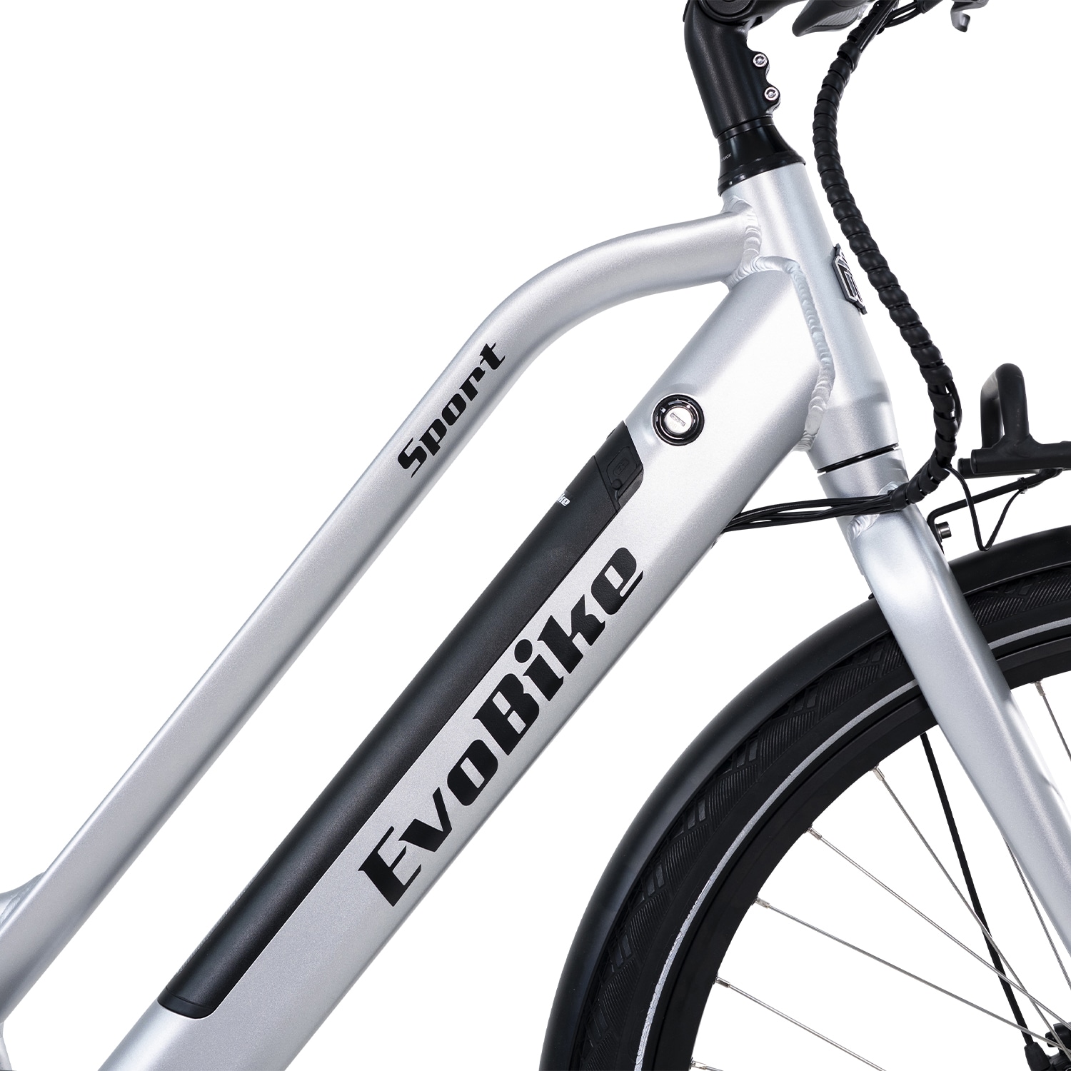 EvoBike Sport SUV har et eksternt girsystem fra Shimano Acera med ni girposisjoner og et kraftig skivebremsesystem både foran og bak. Motor i bakhjulet fra det velkjente Bafang- og litiumbatteriet med kvalitetsceller og 432 Wh (36 V 12 Ah) eller 504 Wh (36 V 14 Ah) kapasitet. Smart LCD-panel er på styret hvor du styrer motorassistansen (5 nivåer) og ser batteristatus, hastighet, kjørelengde og mye mer. I tillegg kan du også lade telefonen via for eksempel USB-porten på displayet.