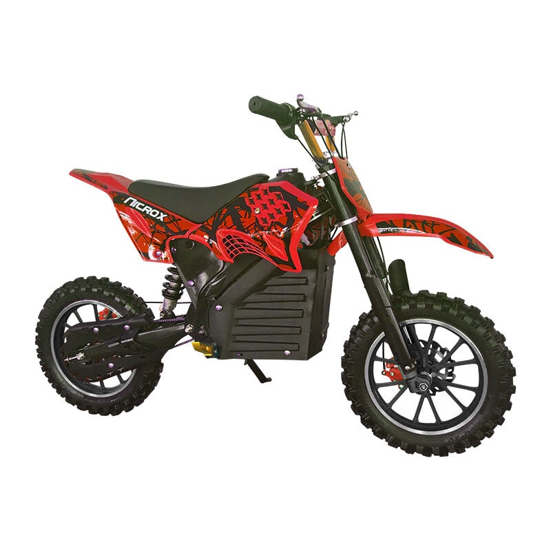 Tøff elektrisk dirtbike som gjør barnet ditt til kongen i nabolaget! 500W sterk elektrisk motor som er vedlikeholdsfri og veldig stille i drift. Null oljesøl, eksosrør som blir varmer, eller forgassere som må stilles inn - bare til å tute (lade) og kjøre!