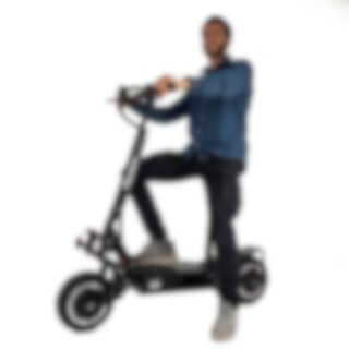 Elscooter Nitrox RS3200 V2 er noe helt unikt innenfor elscooter klassen. Det mest bemerkelsesverdige er at scooteren har dobbelt børsteløse navmotorer - en i hvert hjul - som gir en slik kraft og akselerasjon at du kan fræse avsted på gressplenen med begge hjul samtidig! Den totale motorstyrken er 3200W og du velger med et trykk om du ønsker at scooteren kun skal drives av bakhjulet eller begge samtidig. I maksimal effektposisjon når denne scooter hastigheter på opptil 50-60 km/t! Elmotorene får deres kraft fra et kraftfullt litiumbatteri med 60V 26Ah kapasitet. Det gir en rekkevidde per oppladning på opp til 60 km ved økonomisk kjørsel.