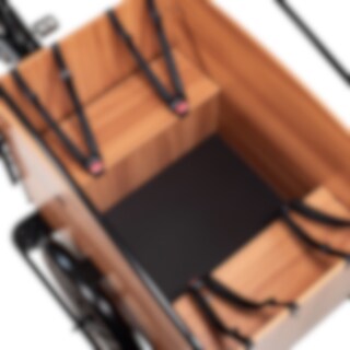 Den elektriske lastesykkelen Evobike Cargo Pro er en velbygget elektrisk lastesykkel med fine komponenter og et lekkert design. Designmessig er Evobike Cargo Pro slanket ned for å være en elektrisk lastesykkel, mye takket være at batteriet er skjult under en av sittebenkene i boksen. Sykkelen har en svartlakkert ramme samt detaljer i børstet aluminium og lær, noe som gir el-sykkelen et luksuriøst utseende. I boksen finnes doble sittebenker med plass for fire (!) barn, bagasje eller kjæledyr. På hver sitteplass finnes justerbart trepunktsbelte og langs langsidene finnes sikkerhetsbøyler som kan justeres i høyden.