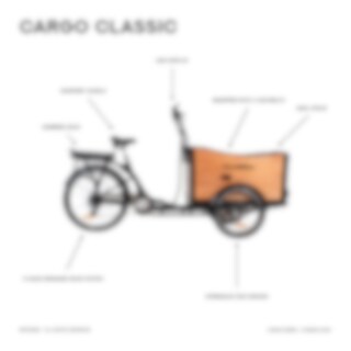 EvoBike Cargo Classic er en klassisk designet lastesykkel, men oppleves som slank og smidig på tross av den store lastekapasiteten. Batteriet er skjult under en av sittebenkene i kassen, noe som ytterligere forsterker det slanke designet. Cargo Classic har en svartlakkert ramme samt detaljer i børstet aluminium og lær, noe som gir lastesykkelen et mer designet utseende. Cargo Classic har aluminiumsfelger som er ekstra forsterket med doble bunner og eiker i rustfritt stål.