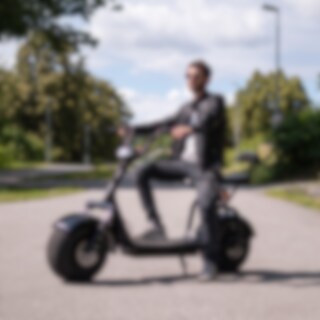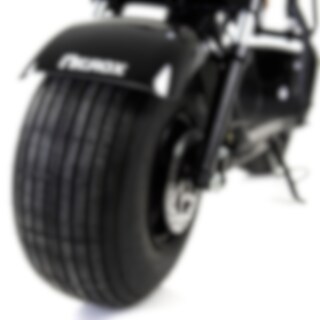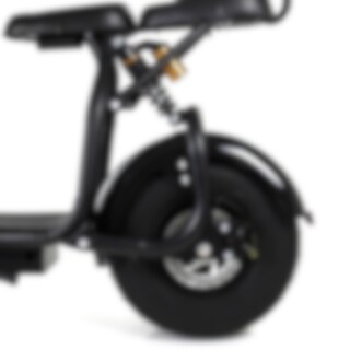 De enorme dekkene gir deg mulighet for å komme komfortabelt frem på både glatte og ujevne overflater. I tillegg er scooteren utstyrt med støttdempere både foran- og bak. Den kraftfulle elmotoren med 1000W effekt gjør at du lett cruiser opp bakker. Toppfarten måler ca. 35-40 km/t og det med god akselerasjon. Elmotoren får sin kraft fra et stort litiumbatteri med 60V 12Ah (720Wh) kapasitet.