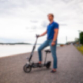 Scooteren kan brettes sammen på et blunk og bæres under armen. Perfekt til å ha med seg i bagasjerommet i bilen på reisen. Styret og setet kan stilles inn så både høye og lave personer kan bruke modellen.