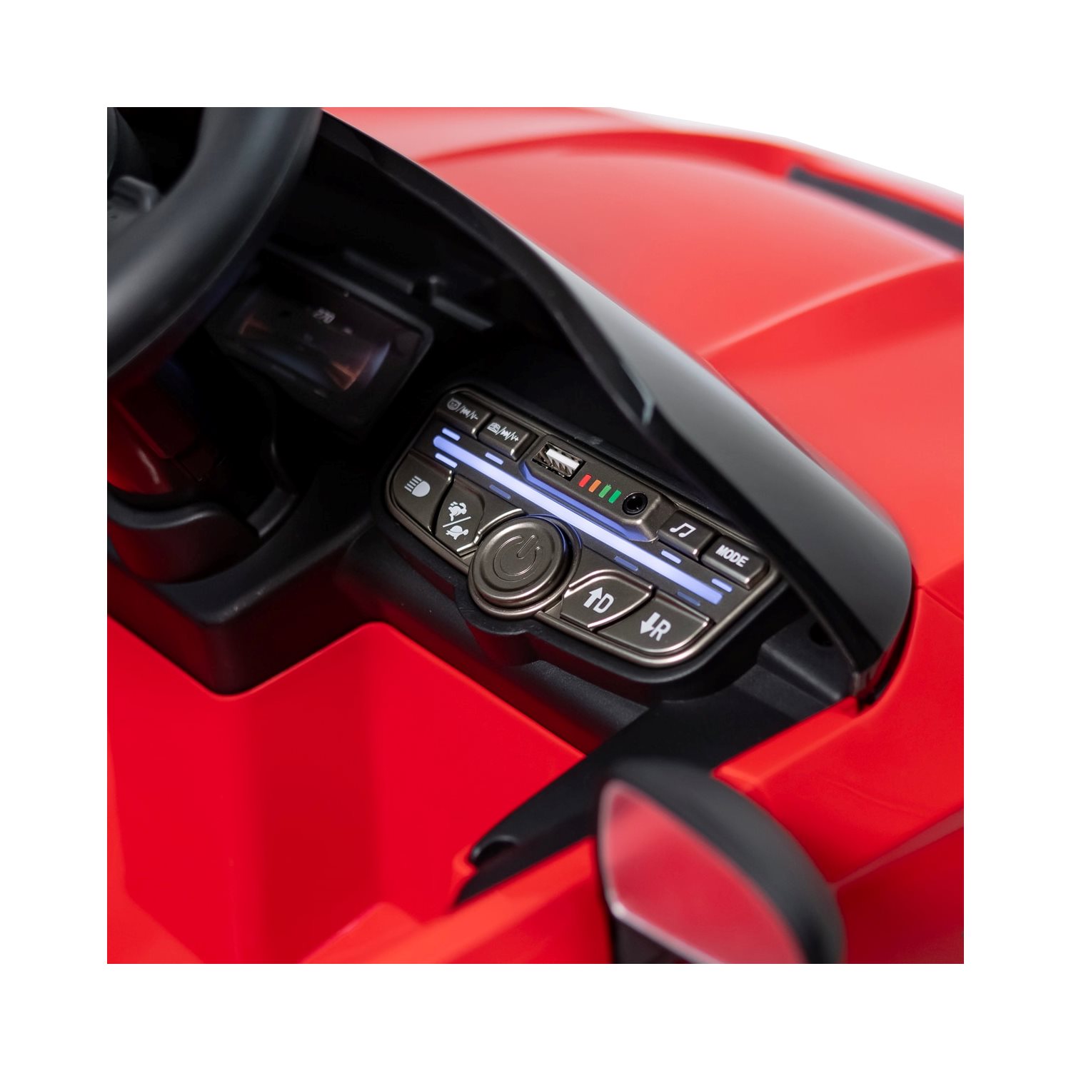 For ekstra underholdning finnes et innebygd musikkanlegg med støtte for MP3, USB og Bluetooth. Barnet kan enkelt høre på favorittmusikken sin mens det kjører.