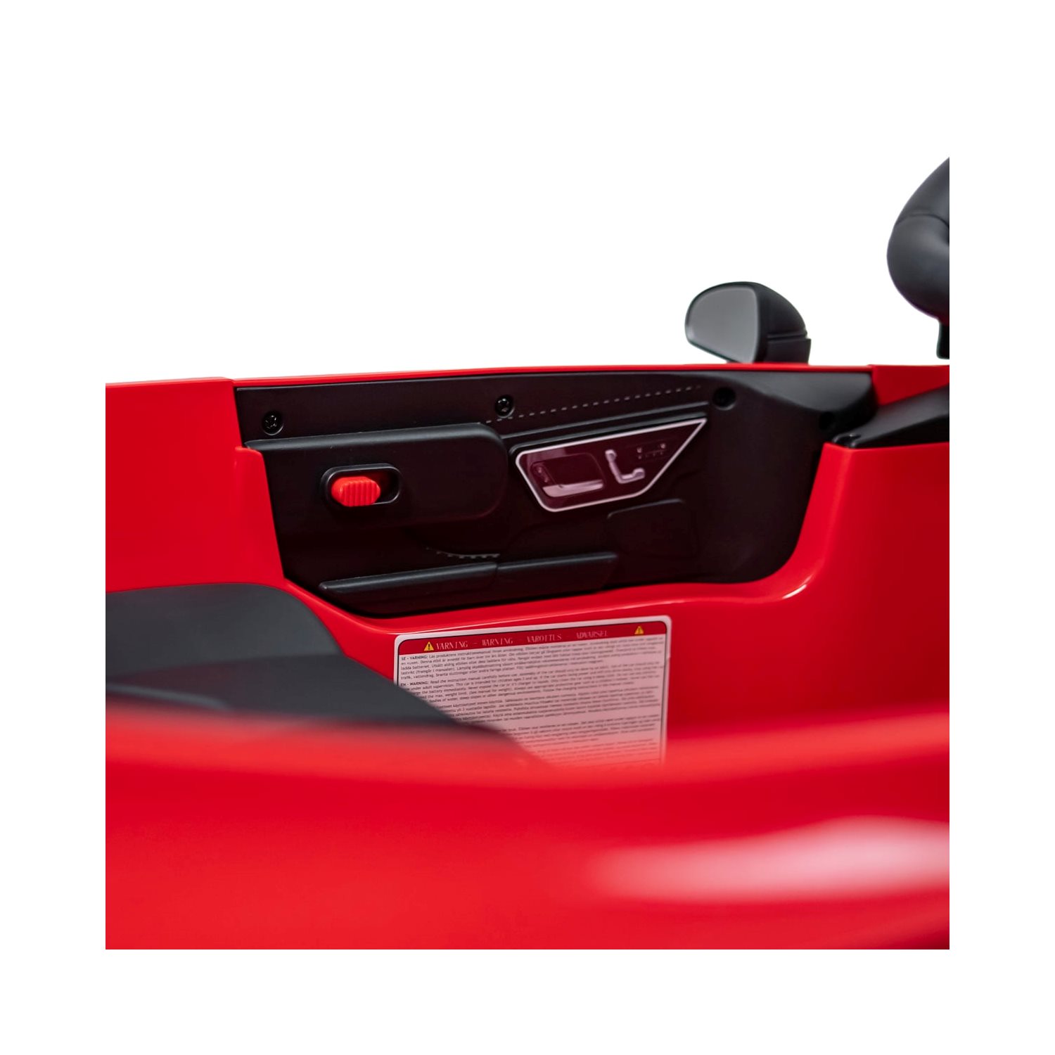 Bilen har åpne dører, myk start- og stoppfunksjon og sikkerhetsbelte som gjør kjøringen trygg og realistisk.