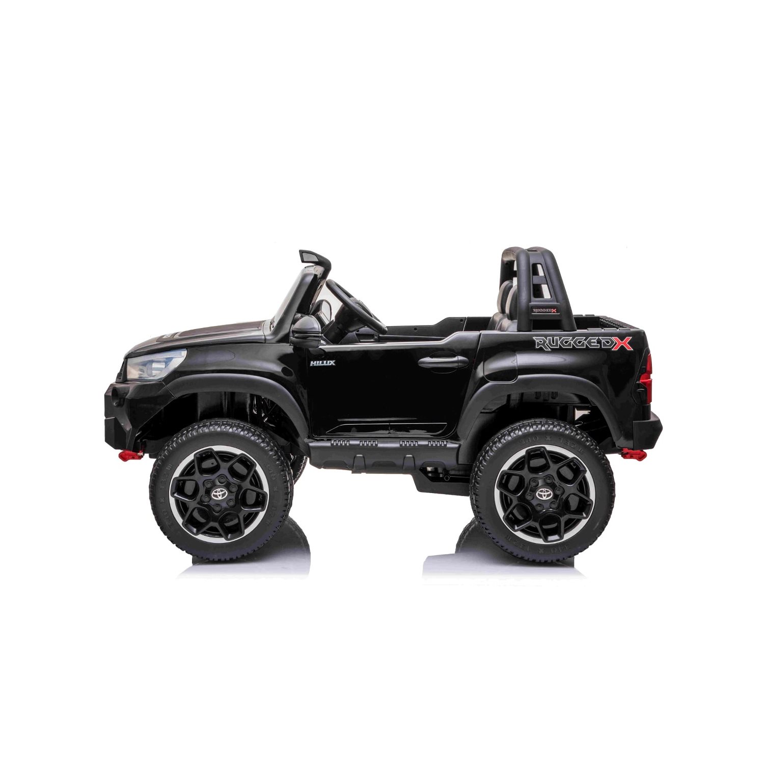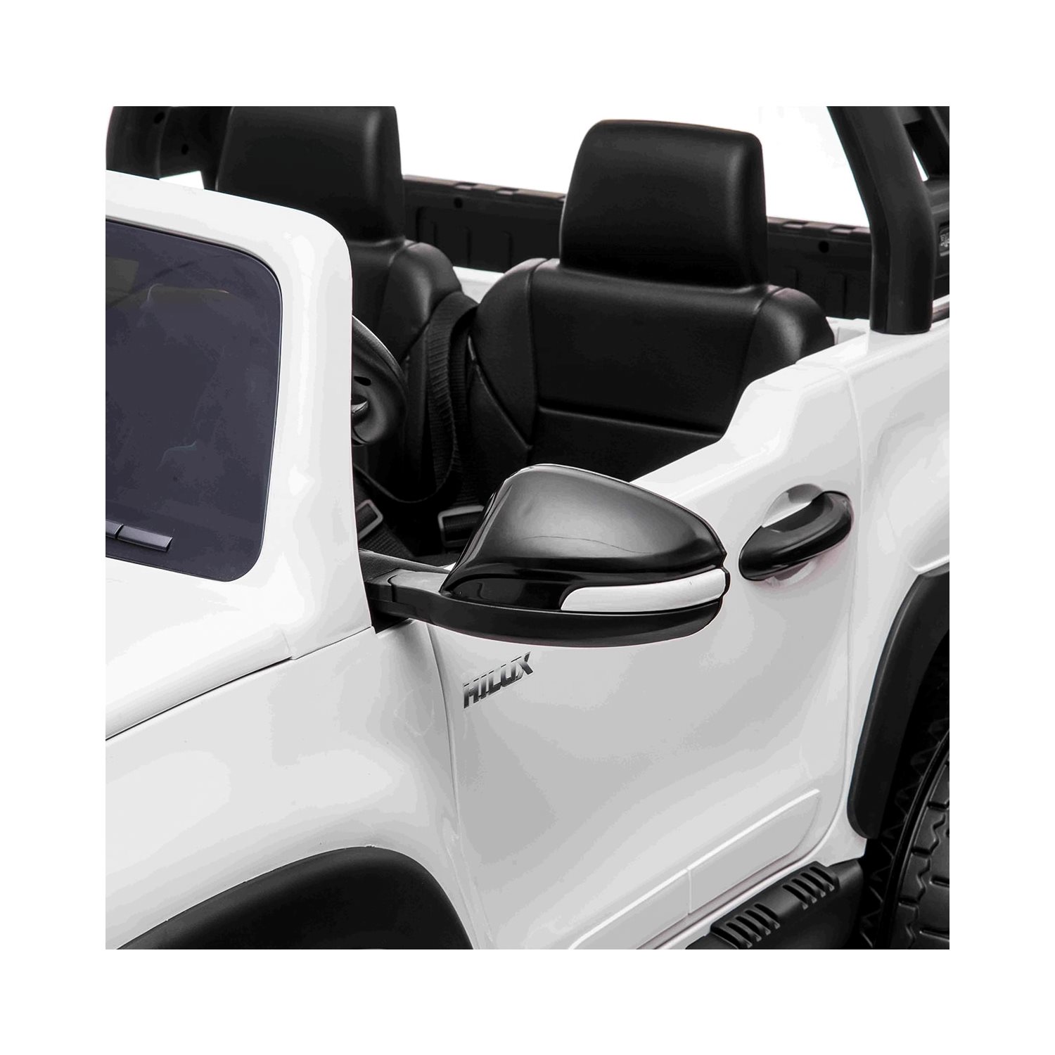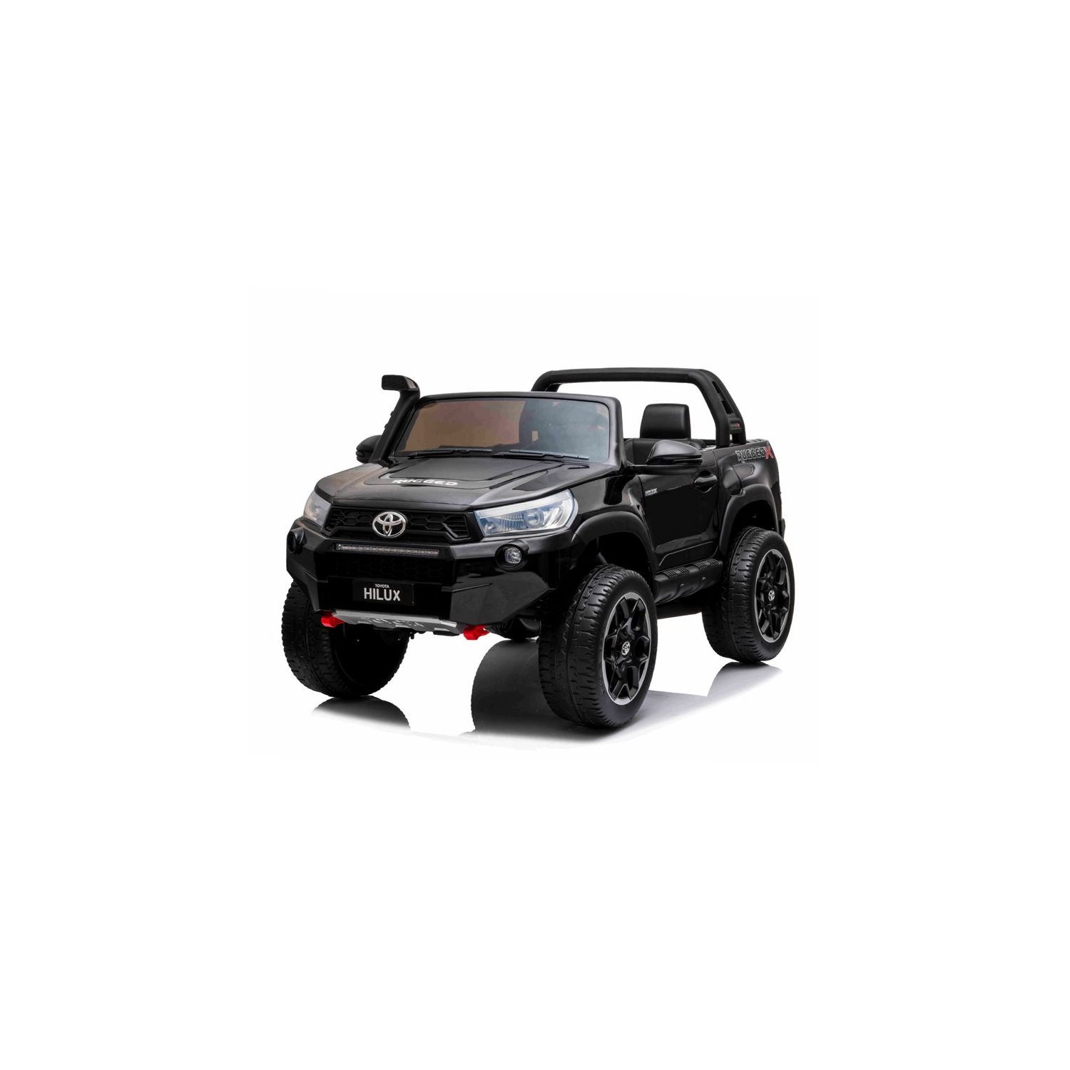Elbilen Toyota Hilux 4WD Svart kommer med en rekke funksjoner som minner mye om en ekte bil. Dører, panser og luke til lasteplanet kan åpnes. Flere forhåndsinnspilte melodier er tilgjengelige, samt muligheten til å koble til MP3-spiller, USB-stasjon eller SD-kort for å spille din egen favorittmusikk. Belysning er tilgjengelig i strengelasterne med kjølig LED-lys, noe som gir effektive turer selv når det er mørkt ute.