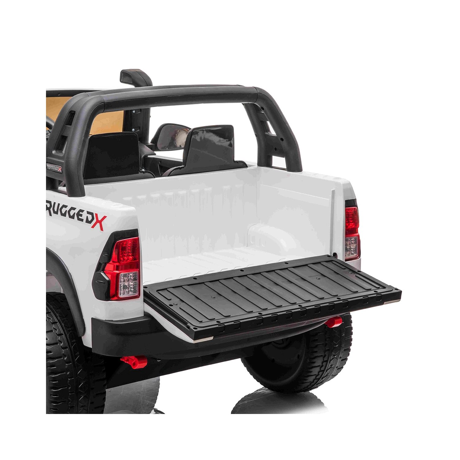 Elbilen Toyota Hilux 4WD Hvit kommer med en rekke funksjoner som minner mye om en ekte bil. Dører, panser og luke til lasteplanet kan åpnes. Flere forhåndsinnspilte melodier er tilgjengelige, samt muligheten til å koble til MP3-spiller, USB-stasjon eller SD-kort for å spille din egen favorittmusikk. Belysning er tilgjengelig i strengelasterne med kjølig LED-lys, noe som gir effektive turer selv når det er mørkt ute.