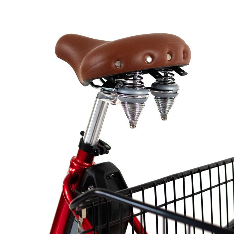 Evobike Elegant 2022 er en stødig trehjulet elsykkel med 250W hjelpemotor fra Bafang, tre gir og fotbrems.