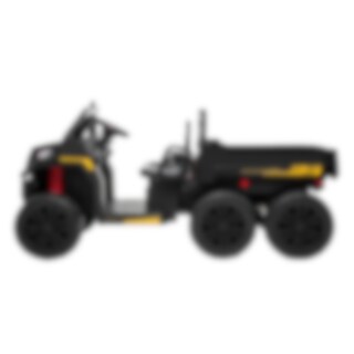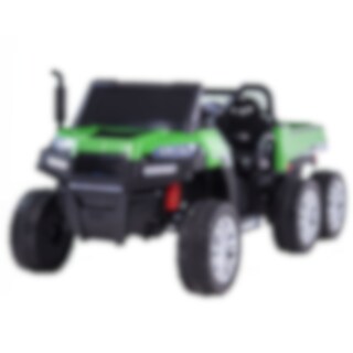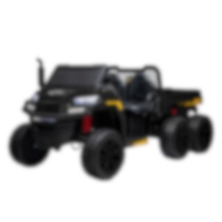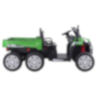 Stor arbeidsmaskin med plass til to barn (og hageavfall på planet), med seks hjul, firehjulstrekk, fjernkontroll og mye mer!