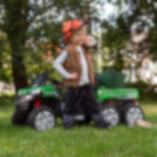 Vil du få barna til å hjelpe til i hagen? Eller frakte ting rundt i nærområdet? Da har vi den ultimate elbilen – den tøffe og romslige Truckster 4x4! Denne drømmeleketøyet har plass til to barn og masse last på planet bak. I motsetning til vanlige elbiler har denne bilen seks hjul – og ikke nok med det – den har ekte firehjulstrekk, noe som gir suveren fremkommelighet! Det romslige planet er enkelt å tippe når lasten skal tømmes.