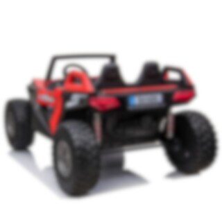 Denne elbilen har virkelig et tøft utseende. Den er stor og romslig, har sjenerøs hjuldiameter og tøffe detaljer som LED-belysning, dører som kan åpnes og støtdemping for bakhjulene. I tillegg har denne bilen solide EVA-dekk, som gir roligere drift og lengre brukstid sammenlignet med tomme dekk i hardplast. Og selvsagt finnes det sikkerhetsbelte for begge sitteplassene. Modellen er også utstyrt med myk start, noe som gir en mer behagelig og mindre rykkete drift for den lille bilentusiasten. Bilen drives av et stort batteri med 12V 10Ah kapasitet, som består av doble oppladbare blyakkumulatorer.