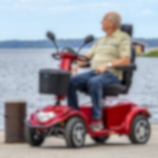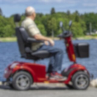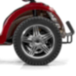 God klaring til bakken og kraftige hjul med individuell fjæring gjør at denne elektriske rullestolen takler de fleste underlag. Samtidig er det lov å bruke modellen i butikken.