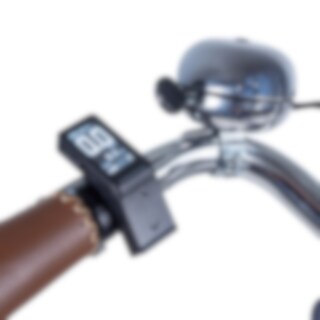 På styret finner du en stilfull bakgrunnsbelyst OLED-skjerm som du bruker for å stille inn hvor mye motoren skal hjelpe til med på fem nivåer. Her vises også informasjon om batteristatus, hastighet, gjennomsnittshastighet, topphastighet og distansemåler. Du kan også styre sykkelens for- og baklys direkte via skjermen.
