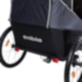 Evobike Yxlan Duo er en allsidig sykkeltilhenger som enkelt kan konverteres fra barnevogn til sykkelvogn. Det universelle sykkelfestet som passer til de fleste sykler, gjør dette til en praktisk følgesvenn til sykkelen din! Alt tilbehør som trengs for å omgjøre vognen mellom de tre forskjellige modusene er inkludert.