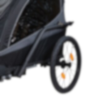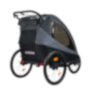 Her er en allsidig sykkeltilhenger for livets ulike gjøremål! EvoBike Yxlan Duo kan enkelt gjøres om fra barnevogn til barnevogn eller sykkelvogn. Kupeen kan raskt foldes sammen slik at vognen får plass i bagasjerommet på bilen. For best mulig komfort har vognen et polstret sete og 5-punkts sikkerhetsbelte for barnet, regntrekk og tonede sidevinduer.